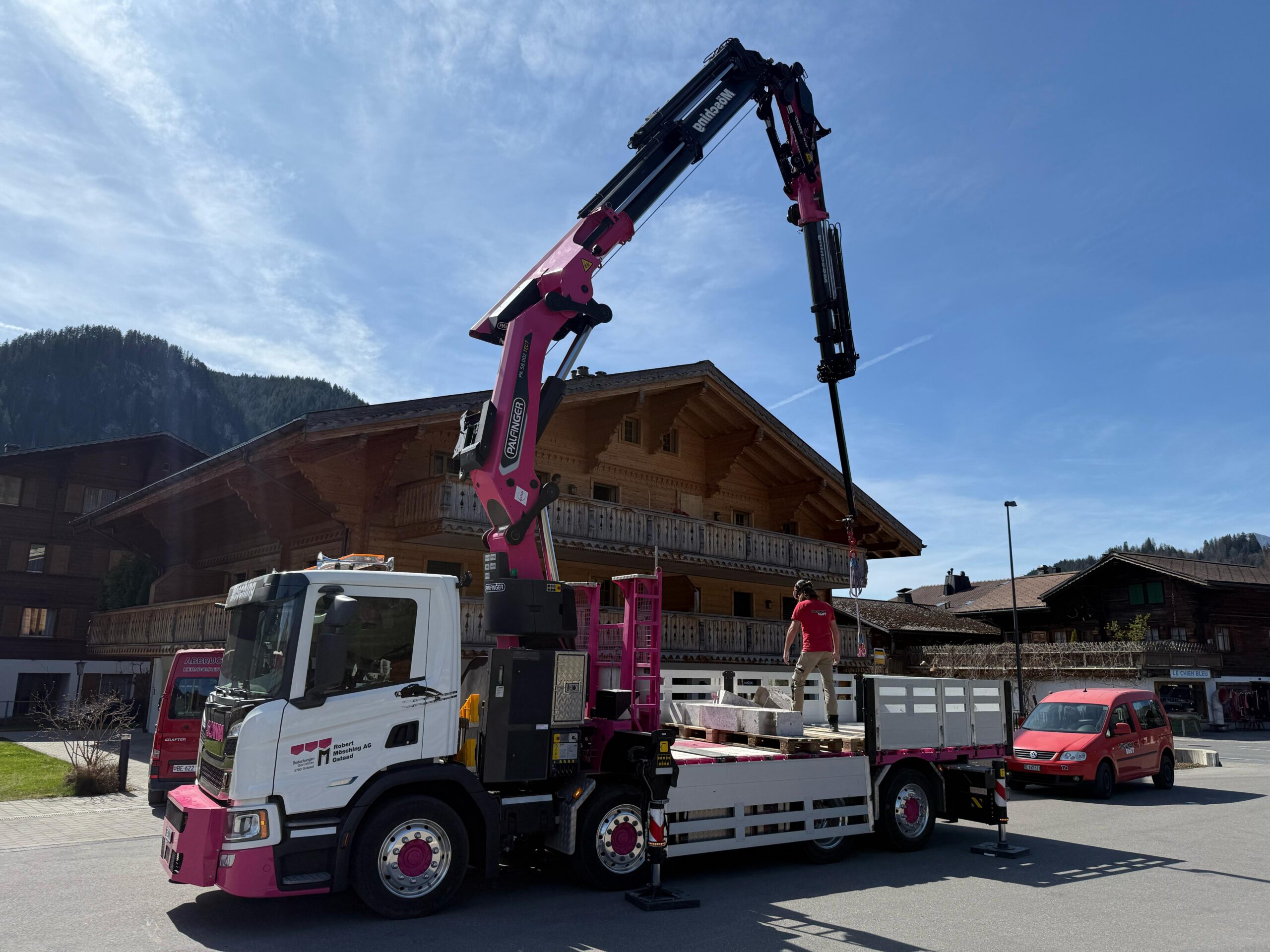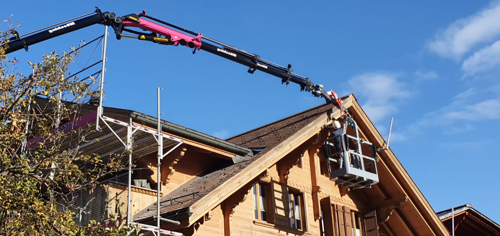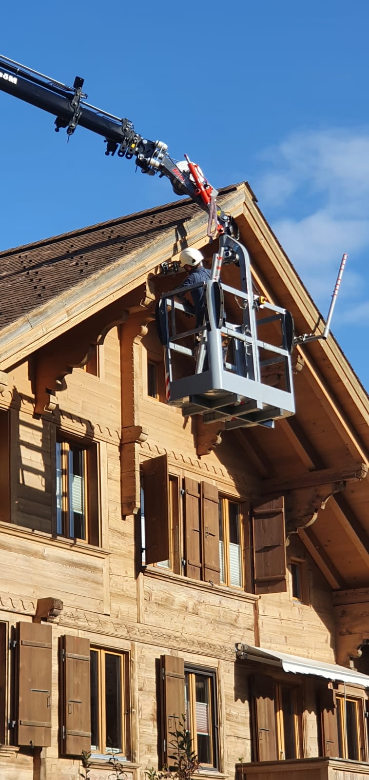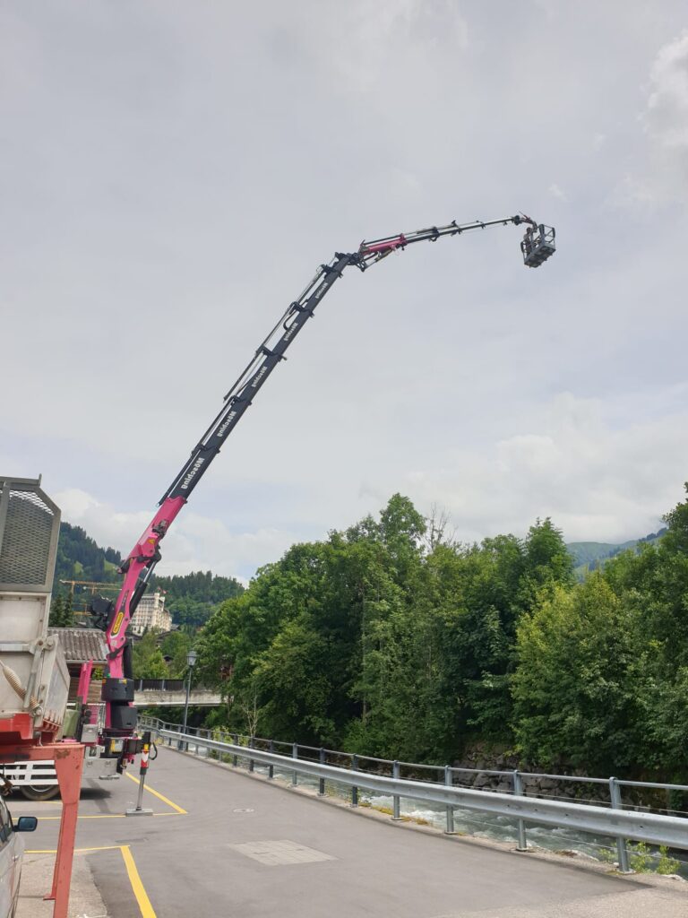 Unser 58-Meter-Hydraulikkran mit oder ohne Korb (SUVA-zertifiziert) ermöglicht präzises Heben und Arbeiten auch in grosser Höhe. Ob schwere Lasten, Montagearbeiten oder schwierige Baustellen, wir setzen auf Sicherheit, Erfahrung und effiziente Abläufe, damit alles zuverlässig gelingt.